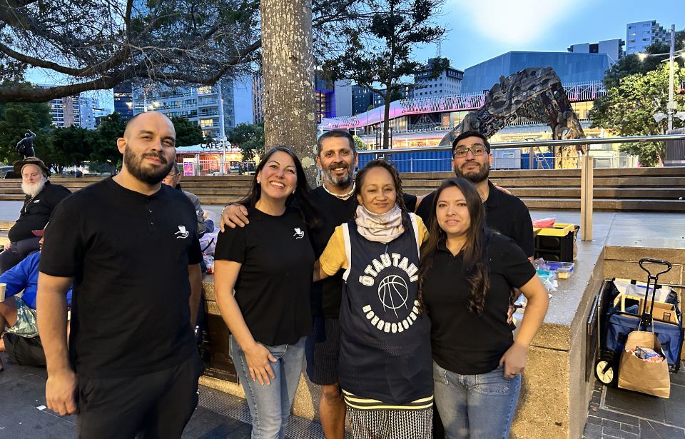 The group of eight Chileans meet every Tuesday in Aotea Square to distribute food and drinks.