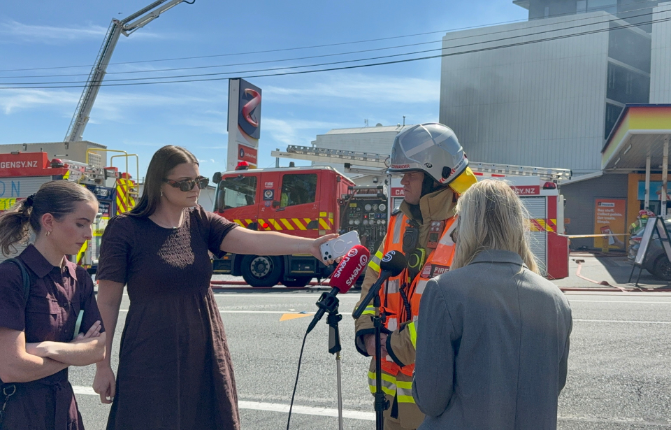 Acting Assistant Commander Kenton Rusbridge spoke to the media after the blaze was contained Photo: Eva Perese-Wood